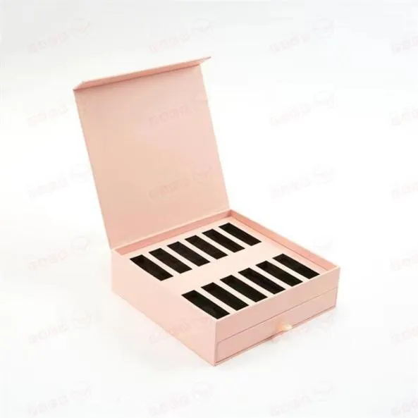 High end luksuriøs kosmetisk emballasjeboks er spesielt designet for kosmetikk som leppestift, foundation og parfyme. Laget av tykt papp belagt med spesialpapir, er dets primære formål å beskytte flasken og forhindre skade.